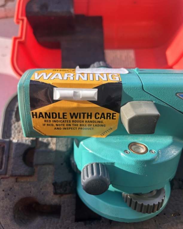 Trieciena sensors nostrādā un kļūst sarkans pēc trieciena, kas varētu ietekmēt niveliera precizitāti.